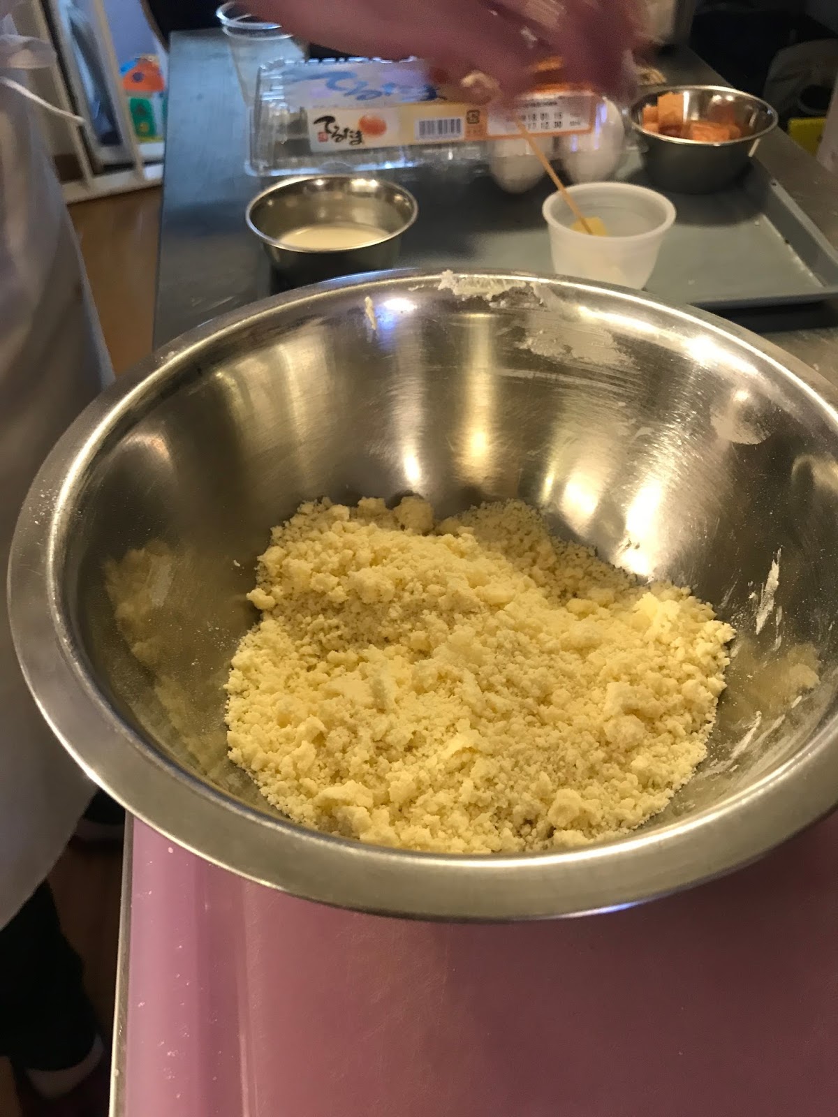 そこに小麦粉と水で伸ばした卵黄と砂糖の